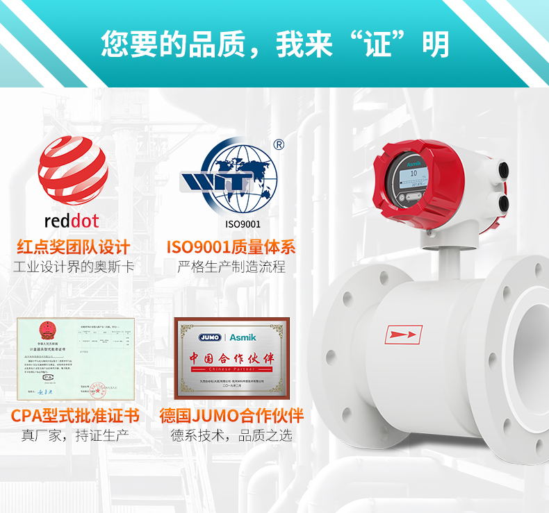 一體式電磁流量計是基于法拉第電磁感應定律工作的,用來測量電導率大于5μS/cm導電液體的體積流量,是一種測量導電介質體積流量的感應式儀表。除可測量一般導電液體的體積流量外,還可用于測量強酸強堿等強腐蝕液體和泥漿、礦漿、紙漿等均勻的液固兩相懸浮液體的體積流量。
