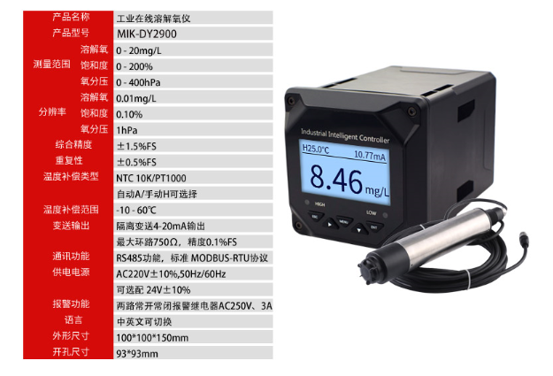MIK-DY2900系列溶解氧控制器可根據現場實際情況進行電極的選擇,既可選擇先進免于維護、抗干擾強且反應快的熒光法溶解氧傳感器,亦可選擇性價比更高的極譜法溶解氧傳