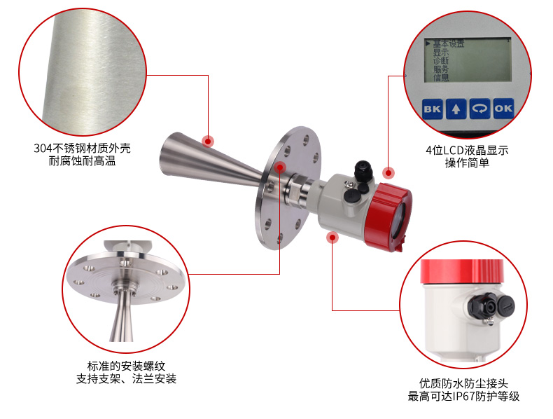 微波幾乎不受干擾,與測量介質(zhì)不能直接接觸,幾乎可以被應用于各種場合,如真空測量、液位測量或料位測量等。由于高級材料的使用,對情況極其復雜的化學物理條件都很耐用,它可以提供準確可靠、長期穩(wěn)定的模擬量或數(shù)字量的物位信號。