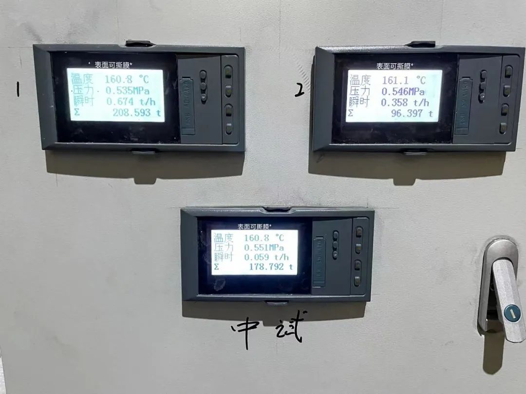 此外,工況現(xiàn)場(chǎng)采用了分體式安裝的形式,通過(guò)安裝于多個(gè)管道間,同一管路上的渦街流量計(jì)、壓力變送器、溫度傳感器采集流量、壓力、溫度信號(hào),并通過(guò)信號(hào)傳輸,將多個(gè)位置蒸汽參數(shù)集中顯示在機(jī)柜內(nèi)的流量積算儀中,在確保了計(jì)量精準(zhǔn)的同時(shí),也能便于現(xiàn)場(chǎng)工人參數(shù)設(shè)置及抄表維護(hù)。