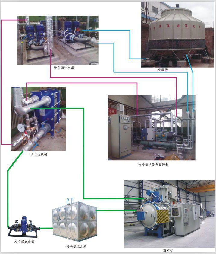 循環水冷卻系統主要由冷卻塔、循環水池、循環水泵、旁濾系統、加藥系統、控制儀表系統及管道、閥門等組成。