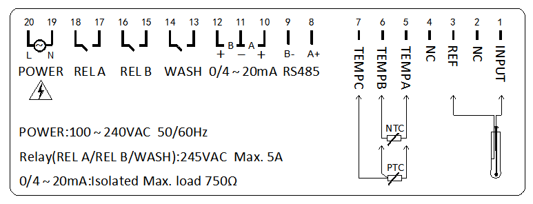 12、0/4 ~ 20mA B+:B路電流輸出端+