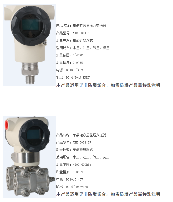 您的位置: 首頁 > 數顯壓力變送器 → 米科MIK-3051-DP單晶硅高精度數顯差壓變送器
