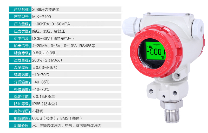 您的位置: 首頁 > 壓力變送器 → 米科MIK-P400 2088殼體高精度壓力變送器 室外露天場合