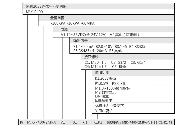 MIK-P400型工業型壓力變送器采用OEM全焊接壓力芯體,微型放大器處理電路。零點量程可遷移。其安裝接口形式,即可根據用戶的要求加工,可提供與其他品牌變送器兼容的規格。該系列產品廣泛應用于工業過程控制、液壓設備、化工等行業,針對工業現場環境比較惡劣的情況該產品有比較明顯的優勢。